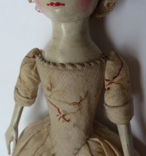 I almost dressed her in a 18th century silk floral dress fabric but changed my mind and decided to